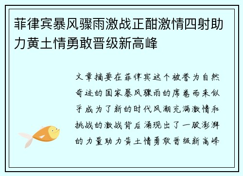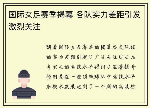 本文将围绕国内球队誓言全力保卫领先地位,迎接激烈冠军之争的终极考验这一主题展开详细探讨。当前,各大国内足球联赛进入了白热化阶段,领先的球队不仅要面对日益激烈的争冠压力,还需要应对来自其他球队的强力挑战。在这样的背景下,如何保卫领先地位,成为了每支争冠球队的核心任务。本文从球队的战术调整、球员的状态管理、教练的战略决策以及球迷和媒体的影响这四个方面,逐一分析国内球队在迎接激烈冠军争夺战时的策略与挑战...