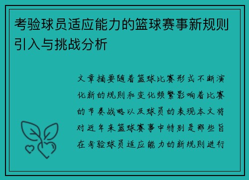 在当今竞争激烈的NBA赛场上,球员和教练的表现不仅限于技术与战术的较量,团队氛围、情绪调动等因素也在比赛中发挥着重要作用。雷霆队主帅因(Mark Daigneault)最近通过带领球队成员上演一场充满趣味的表演,将队员们打扮成“女拳手”的搞笑场面,成功为球队注入了新的活力。这一举动不仅为球迷带来了轻松愉快的时刻,也让球队的气氛变得更加团结和积极。本文将从四个方面来分析雷霆主帅因如何通过这一趣味表演...
