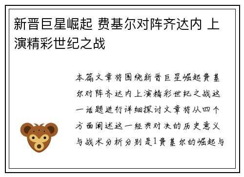 足球,不仅是身体的对抗,更是智慧的较量。许多足球巨星不仅在球场上展现了无与伦比的技巧和天赋,还通过超凡的战略眼光和出色的决策能力,深刻影响着比赛的走向。从梅西的精准传球到C罗的突破,每一个细节都彰显出他们在比赛中所展现的智勇双全。本文将从四个方面详细阐述足球巨星如何在赛场上展现超凡技艺与战略眼光,分别是:技术层面的精湛表现、比赛中的战术思维、团队合作的战略眼光以及关键时刻的心理素质。通过这些方面的...